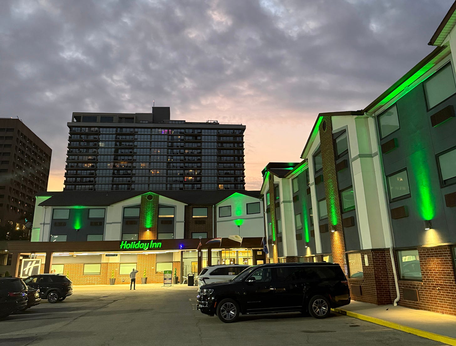 Am Donnerstag sind wir nach über 10 Stunden Flug (erst von Frankfurt nach Charlotte, dann nach Kansas City) am frühen Abend in der Stadt angekommen. Einige haben sich noch eine Sportsbar im Power & Light-District gesucht und dort das Thursday Night Game geschaut, andere sind an der Hotelbar geblieben und haben dort etwas gegessen.